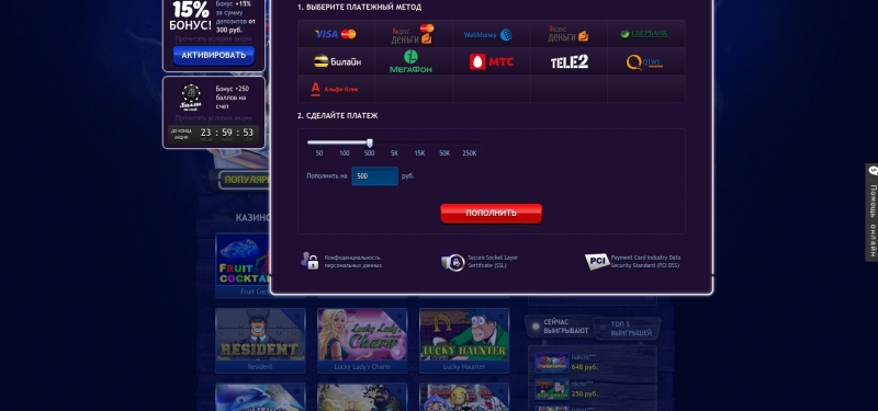 💰 Полный список платежных систем для переводов денежных средств размещен на игровом портале. Разрешается пополнять баланс через сообщения с мобильных телефонов. Наличка на сайте не принимается. При снятии суммы более 1000 долларов США требуется идентификация клиента.