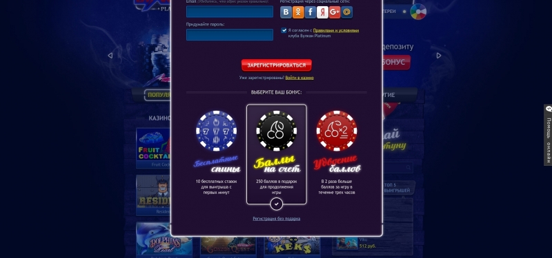 Регистрация и вход на официальный сайт Вулкан Платинум
